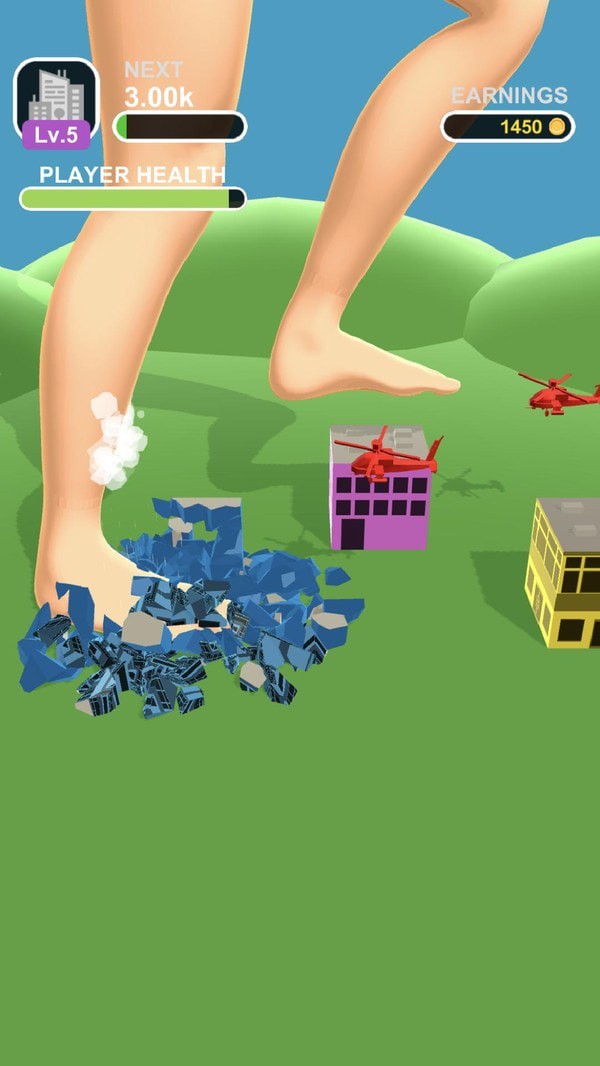 2.完成任务变得无比巨大,无需介意随意踩踏场景中的房屋和路人。