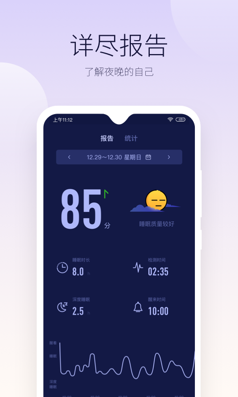 好眠app帮助您每日记录、统计和对比睡眠情况,了解自己的睡眠,才能更好地睡眠。