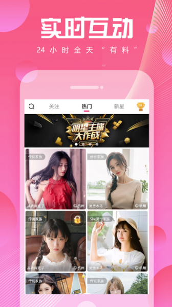 24小时直播间、激烈pk排位赛,活动不停,pick你喜欢的主播,赢取专属身份勋章。