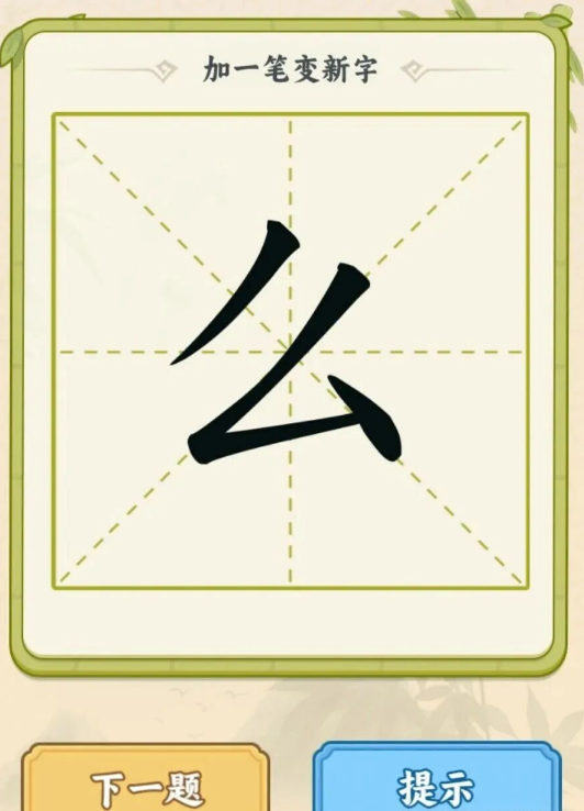 1、本游戏玩法很简单。比如屏幕上显示一个“么”字,你需要给它加一笔,让它变成另外一个字。