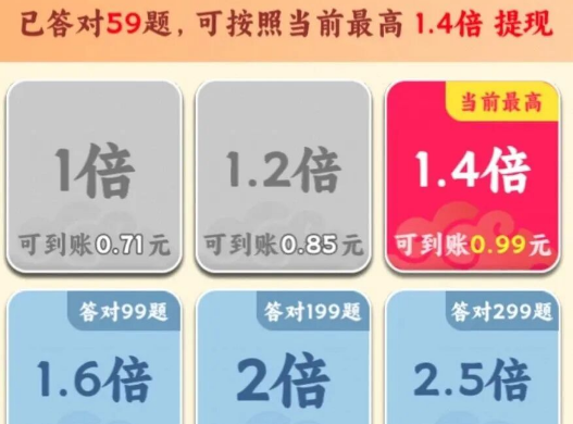 3、答得越多,能提现的比例就越高。