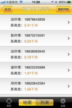 打开“驾到”,在地图上会显示出您附近空车或乘客的地理位置以及他们的联系电话。让司机和乘客能够迅速找到对方。android