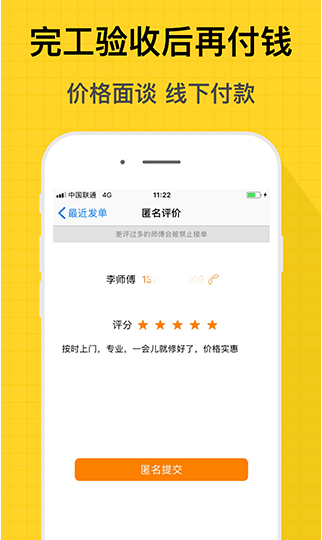 入驻师傅100%实名,360°监督评分体系