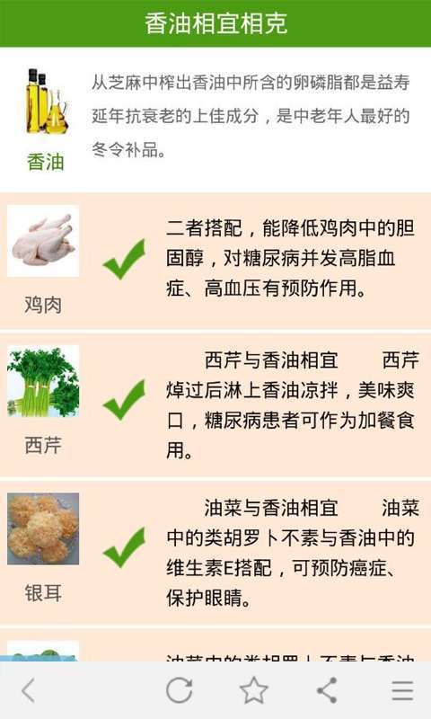 食物相宜相克是99健康网开发的一款用于查询食物的工具。应用提供的食物相克信息,分享健康生活常识及养生饮食资讯,帮助了解相克食物和饮食营养知识,吃出健康、吃出营养。食物相克大全:讲述食物是否相克以及食物相克表,让你清楚了解哪些食物是相克的。