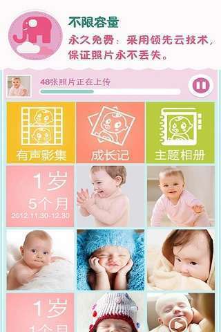 家庭共享:妈妈上传照片,爸爸立刻看到,一家人实时共享宝宝照片;