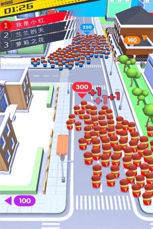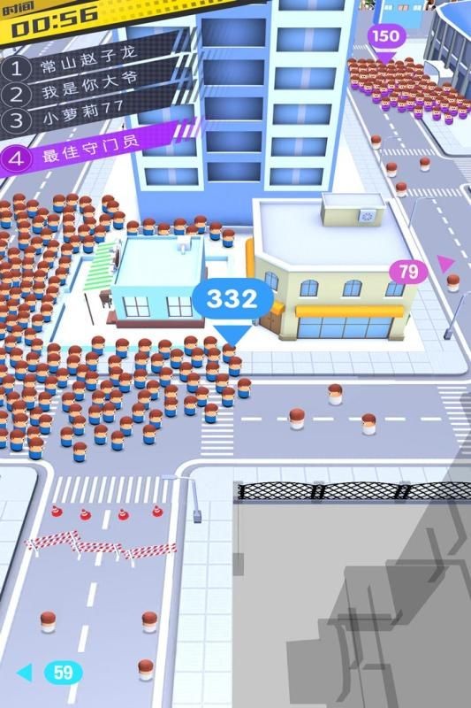 3、游戏中玩家需要在关卡地图四处奔跑,在规定的时间内将周围的人群全部变成与你相同的颜色。