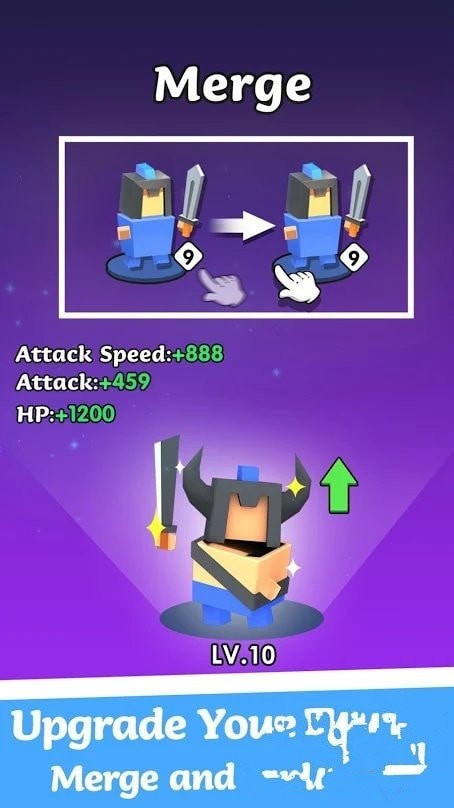 2、小兵可以通过合并升级,也很可以通过单纯的升级强化来壮大他们的力量。