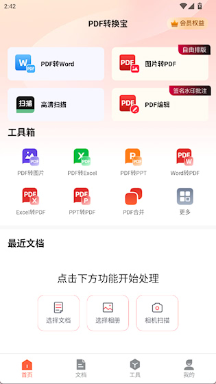 pdf转换宝是一款多功能PDF处理工具,集格式转换、文档扫描、文件编辑与阅读于一体,适用于日常办公、学习资料整理、合同归档等多种场景,无需依赖电脑即可完成高质量的PDF操作,轻松将PDF转为常用格式,显著提升移动端文档处理效率。