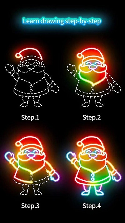 《绘制发光圣诞离线版》是一款专为圣诞节打造的沉浸式绘画游戏,以“零基础创作发光圣诞场景”为核心玩法,通过独特的闪光画笔工具与分步教学系统,让玩家无需绘画经验即可轻松绘制出带有动态光效的圣诞树、雪人、礼物盒等经典元素。游戏内置200+圣诞主题模板库,涵盖从传统红绿配色到梦幻星空渐变等多种风格,配合实时渲染的发光粒子效果,使每一幅作品在黑暗中呈现璀璨的节日氛围。玩家可自由切换画笔类型(如荧光笔、霓虹笔、星尘笔),通过叠加图层与混合模式创造独特光影,完成的作品支持导出为4k高清图片或动态GIF,并可在“我的画廊”中与全球玩家分享,形成互动式圣诞艺术社区。