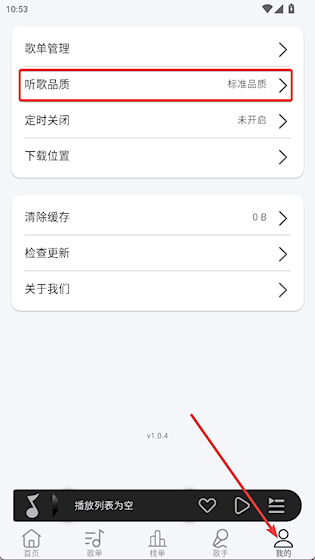 1、进入“我的"界面,点击听歌品质
