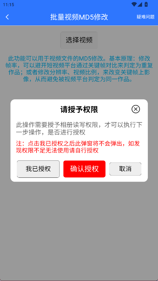 2、授予权限导入视频