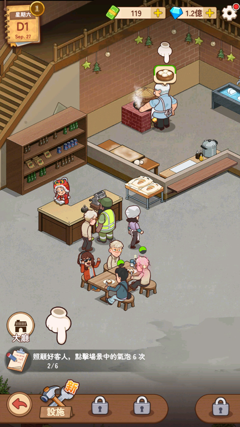 3、随后进入早餐店内部,玩家可以自由摆放桌椅与餐具,并亲手制作包子招待顾客;
