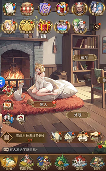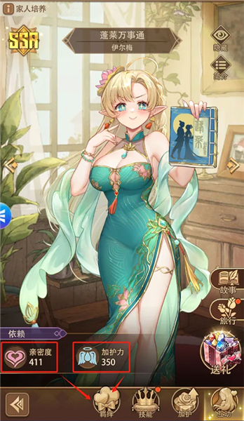 家人养成及约会,家人对于村庄收益及提升伙伴战力有着重要的作用,其两项重要的属性是亲密度和加护力。