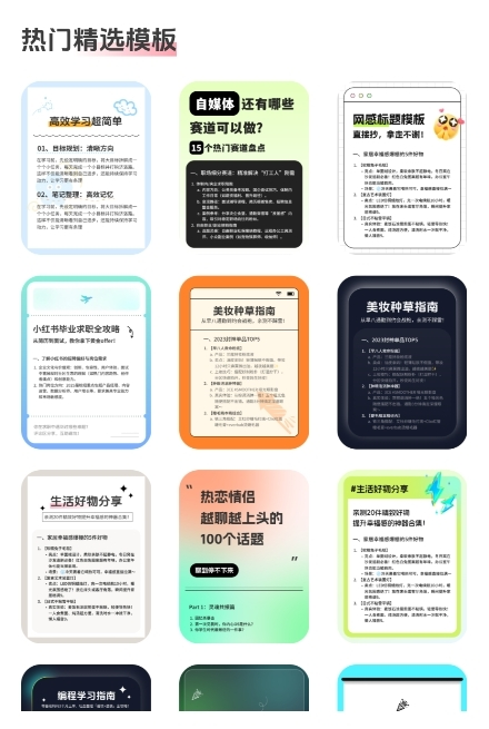 2、配备丰富创作素材与模板,助力短时间内完成高质量文案。