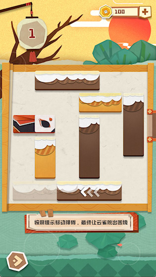 《梦纸的谜境》是一款融合剪纸艺术与国风美学的益智解谜手游,采用经典华容道玩法,通过滑动不同长度的木块,为被困的云雀开辟一条通往出口的路径,画面清新雅致,蕴含层层递进的逻辑挑战,融入创意脑洞与幽默元素,使解谜过程更具趣味性与沉浸感。
