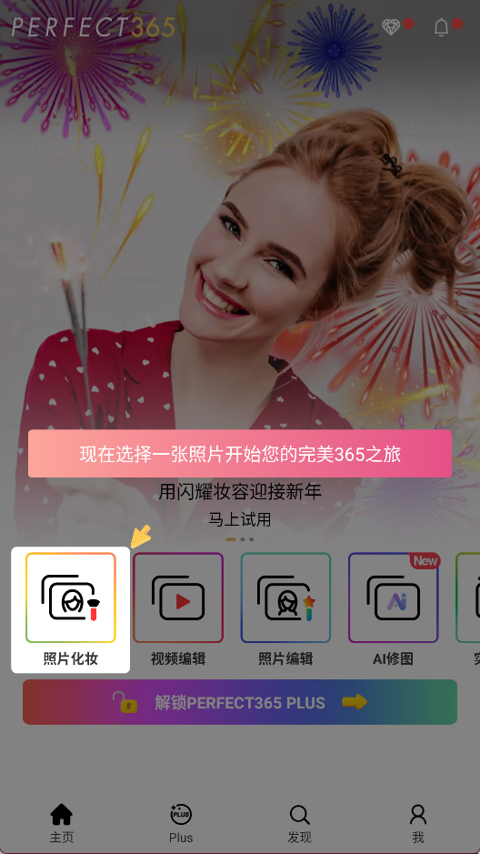1、打开APP后,选择照片化妆