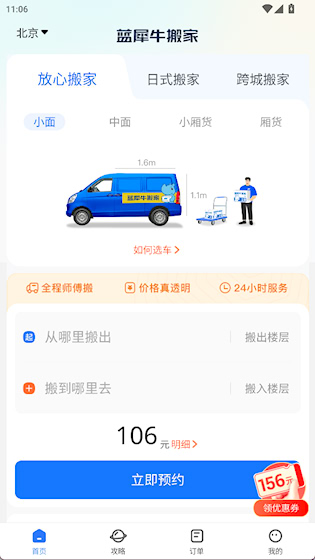 1、打开APP,在首页完成搬家预约