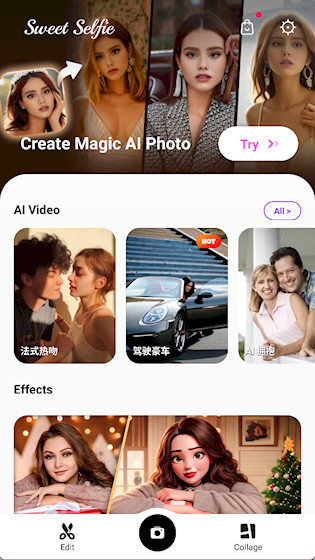 Sweet Selfie(爱自拍)是一款摄影美化应用,融合了美颜相机与图片编辑功能,提供丰富的妆容调整选项,如润唇、修眉、亮眸、塑形等,配备多样贴纸、艺术滤镜和背景虚化效果,帮助使用者轻松打造理想形象,让每一张自拍都焕发自信光彩。