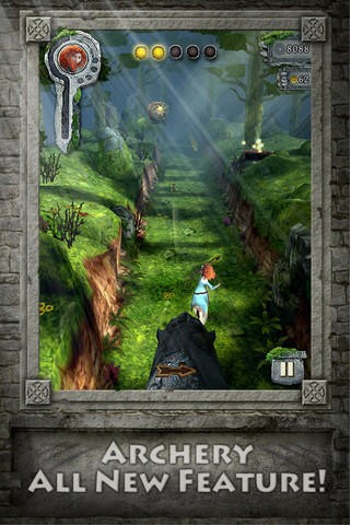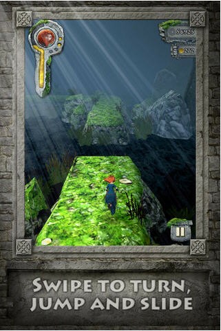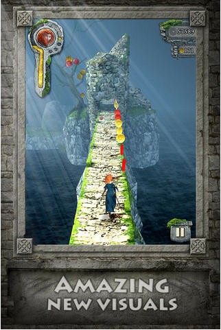 神庙逃亡:勇敢传说Temple Run:Brave是Temple Run的开发商与迪斯尼合作的一款游戏。游戏还原了Disney的经典作品《Brave》的场景,以Merida公主作为主角。在游戏中,你就是那个有着精湛弓箭技能的勇敢的Merida公主,奔跑、跳跃、滑行,转身拉弓射出一条穿越苏格兰荒野的冒险之旅。