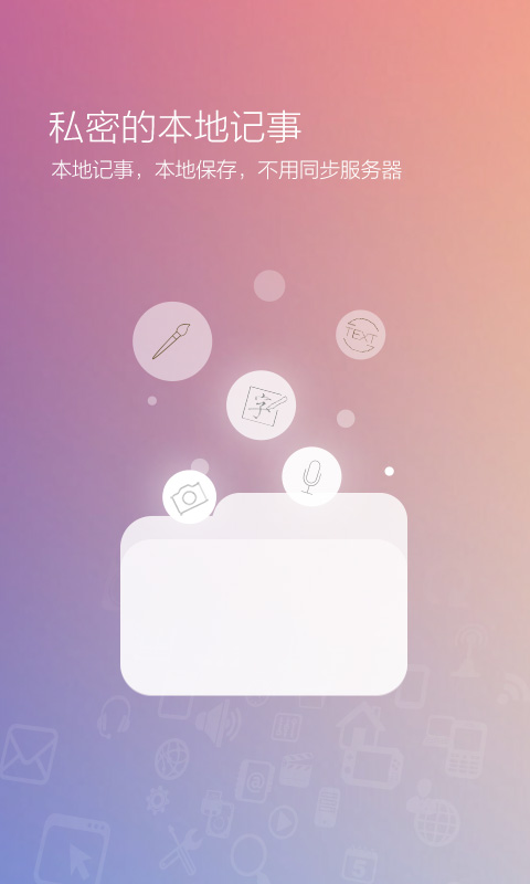 - 支持文字记事、语音记事、语音转换文字、拍照记事、手写记事、涂鸦记事、粘贴记事、选图记事等的记事模式