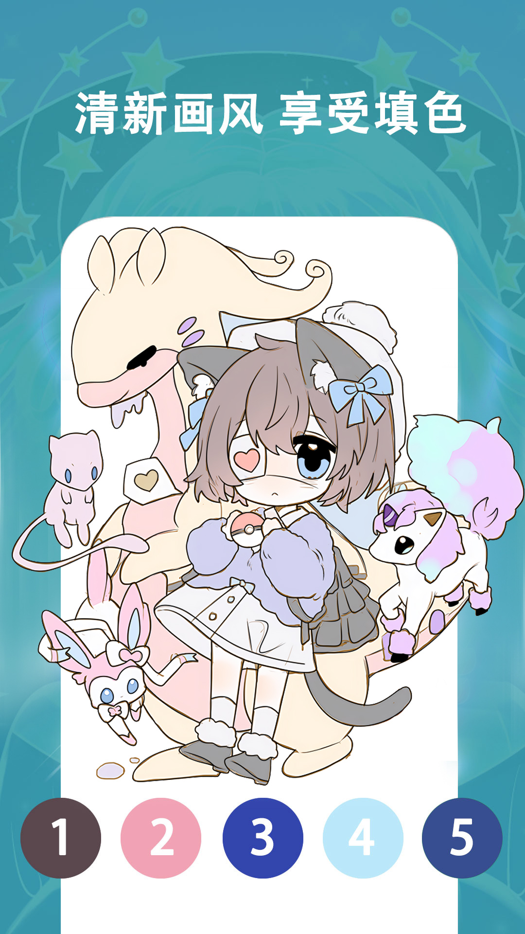 涂色日记梦幻数字填色App里有很多图案,可爱的小动物、精美的动漫角色或者是靓丽的风景线,可以按照图片原有的色彩进行上色,特能够发挥想象自由填色,创作出不一样的画作。