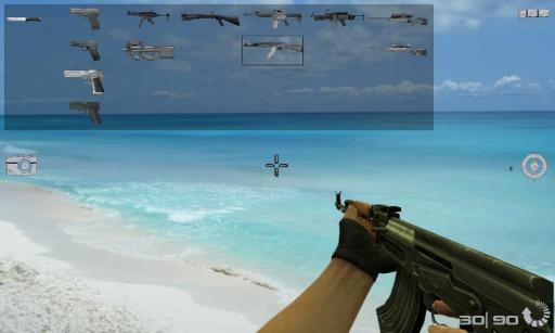 游戏内包含的cs中绝大部分的枪械,向左和向右滑动来切换武器,在你的手机中打爆别人的脑袋吧!