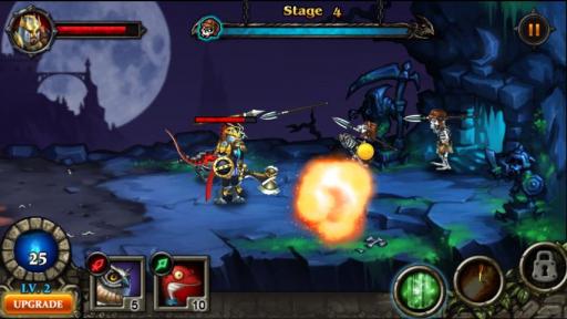 当夜幕降临,亡灵战士便开始发起攻击,这时,英雄就要挺身而起,拿起武器,保卫你的家园并消灭敌人。