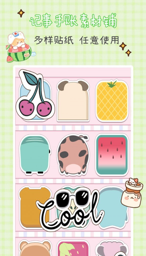 1、这里有丰富的手帐素材、海量的贴纸、信纸和封面,同时还提供了多样的个性化字体。