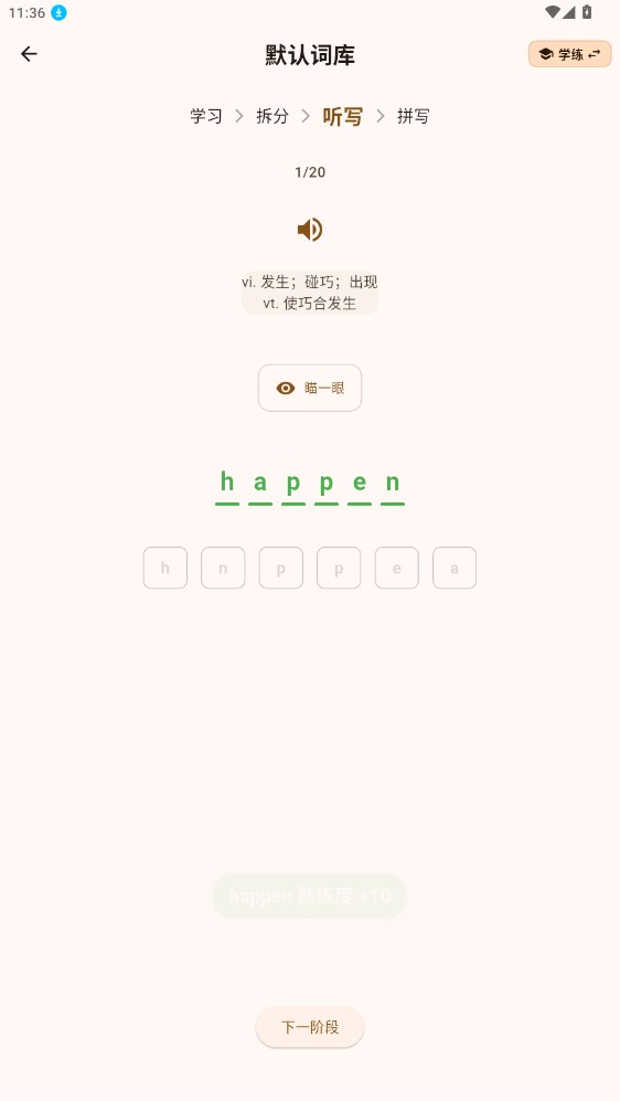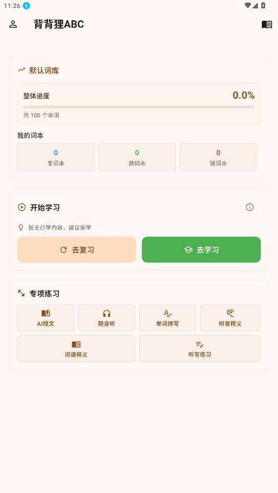 3、点击 “去学习” 选项,就能开启记单词流程;