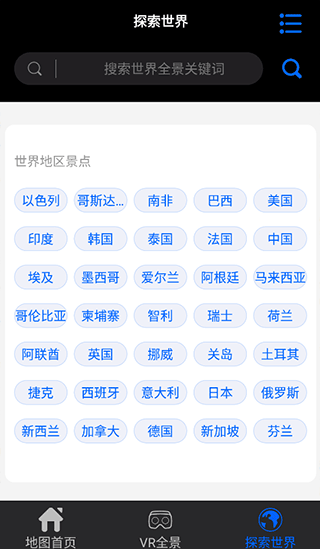 3、选定国家后,再选择其中具体的景点开始探索。