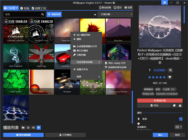 6、能创建并编辑专属壁纸,还可通过蒸汽车间分享制作的壁纸。
