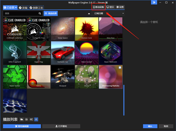 1、在 Windows 端 Wallpaper Engine 里,点击新的移动设备按钮,再选连接新设备。