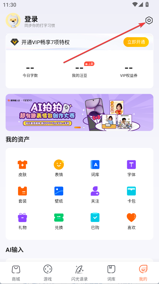 1、打开搜狗输入法app,进入“我的”界面点击右上角的设置按钮