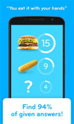94%是一款猜谜解答类休闲小游戏,想了解好玩的好吃的的话可以可以试试这款小游戏,想玩好它的话词汇量也是必不可少的噢!如果我提问,"你用你双手吃掉的食物," 你的脑海里会先想到什么呢?汉堡?玉米棒?大排?在94%游戏中,游戏的目标非常简单:寻找给出答案中的94%!