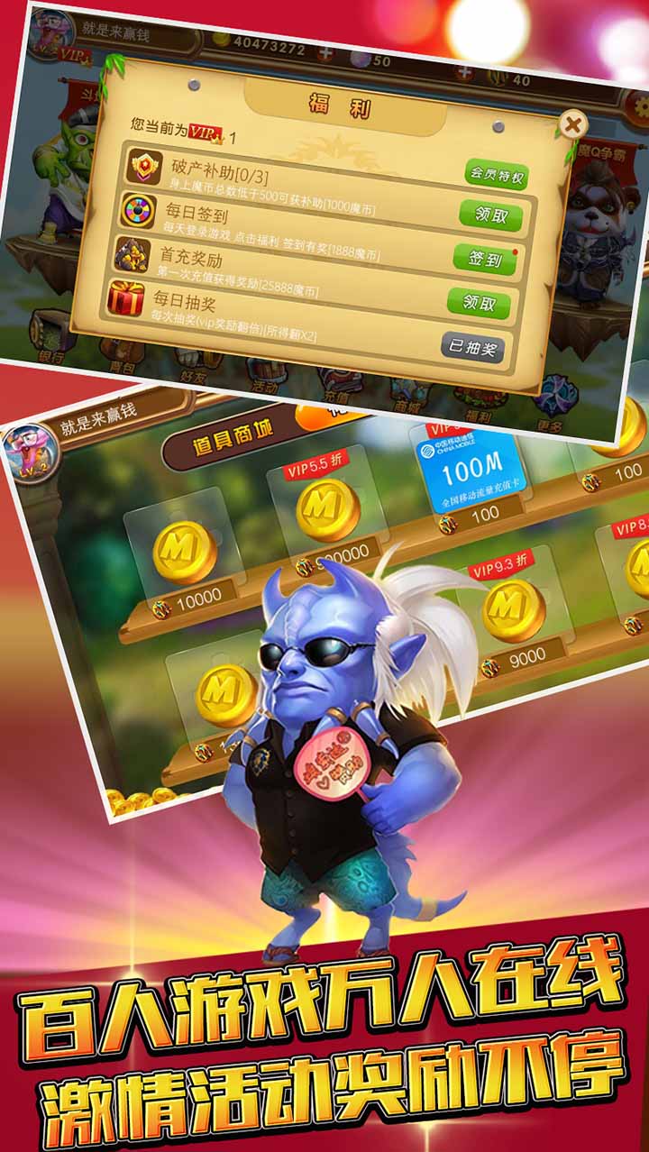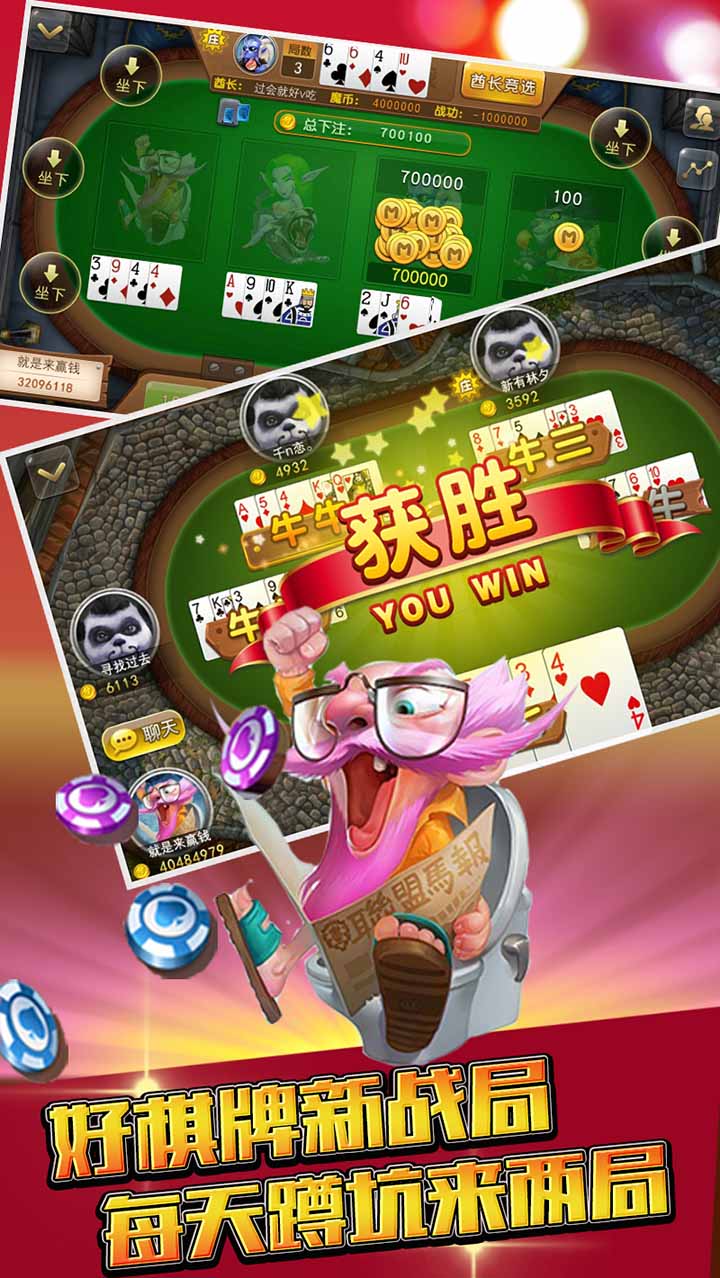 魔Q游戏,由深圳城里人科技倾心打造。城里人游戏出品,好玩不上瘾!清新的魔兽主题界面、Q萌玩法、感受现场式游戏体验。其中棋牌包括“魔Q斗地主”、“德州扑克”、“魔Q牛牛”等游戏,另外还有轻松赚金的“魔Q捕鱼”和挑战心跳的“魔Q争霸”。路上、公司、厕所、餐桌、咖啡厅、工地、逛街,哪里都能玩,只有想不到,没有玩不到!