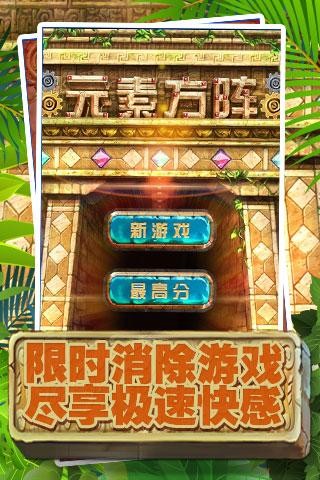 《元素方阵》是一款限时消除的较新力作,在游戏中你可以感受到不同于以往的消除体验,更加考验你的反应速度;在神庙有效崩塌前,你要集中注意力通过点击相同的封印石迅速的释放出更多的宝石,获得更多的分数,过更多的关卡;在点击封印石的过程中会意外得到惊喜道具的帮助,让你更轻松的过关;如果神庙崩塌也不要担心,古老的力量会带给你触发改变命运的转轮,带给你不一样的惊喜。