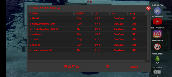 4、设置好恐怖周五地图、房间名称和玩家人数后,点击【创建/Create】即可成功创建房间,开始畅享多人联机的乐趣。