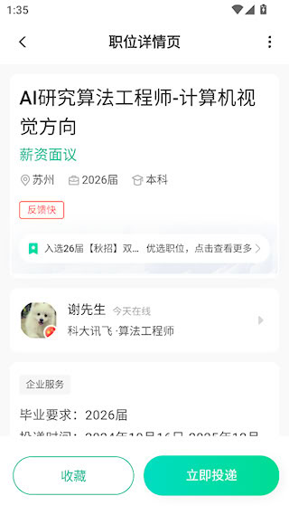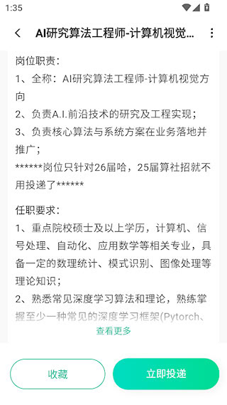 2、找到心仪的职位,可以收藏、立即投递简历,下拉还能查看职位详情