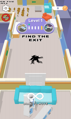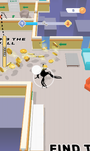 毒液躲猫猫这款卡通风格的动作闯关游戏内,我们可以操控可怕的毒液来进行闯关,在地图中会有很多的金币可以收集,我们还要找到里面的钥匙才能前往下一个房间。在有的房间中会有很多带有武器的人类士兵,我们可以利用掩体来到他们的视野盲区,将他们悄无声息地消灭掉。