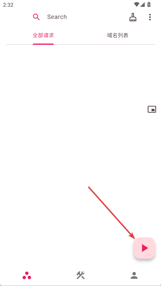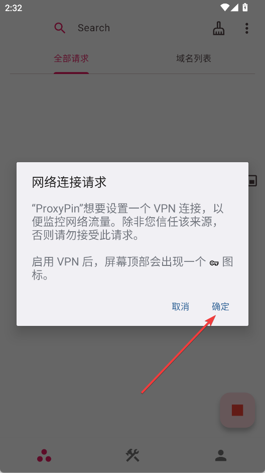 1、打开ProxyPin,在首页点击右下角的按钮开始