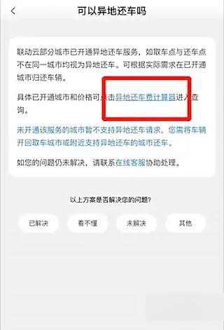 6、点击打开“异地还车费计算器”。