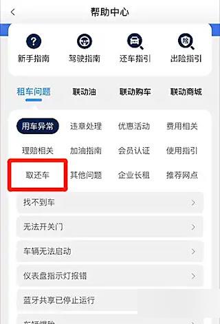 4、点击“取还车”功能。