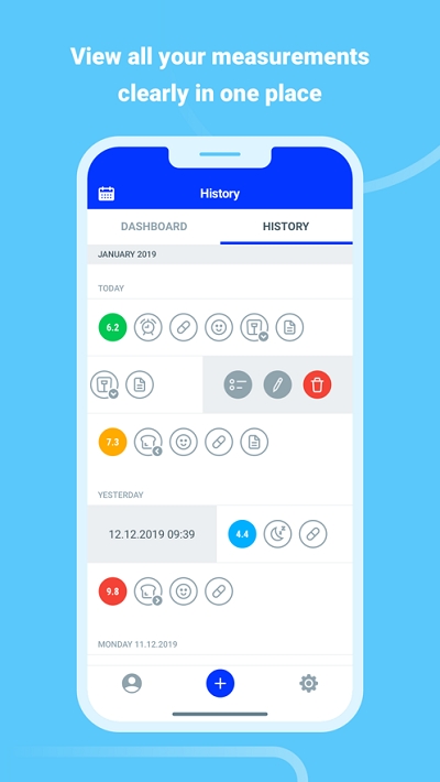 1、在Glucly中输入测量值的目的是尽可能简单。每天使用Glucly监测糖尿病所需的时间最少。