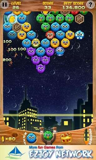 《小鸟泡泡龙(BubbleBird)》是一款很不错的街机泡泡龙游戏,泡泡龙大家都不陌生,射击同类的产品来进行消除,该游戏的画面十分清晰与音效也非常的好!与市面上的泡泡龙游戏不同的是,只要玩家击打到较后的房屋泡泡即可过关,不必全消。