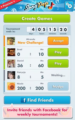 《音乐竞猜(Song Pop)》是让你的朋友或者陌生人猜测你对现今流行或曾经流行过的歌曲的了解情况。