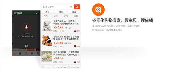 淘宝Android客户端依托淘宝网强大的自身优势,整合旗下