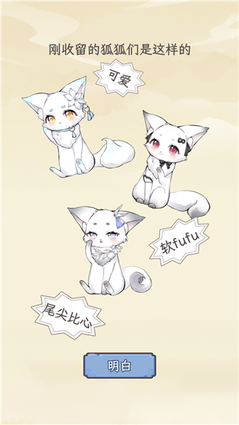 1、在本站下载并打开游戏,第一次进入的小伙伴可以提前看看将来你要收养的小狐狸的立绘;