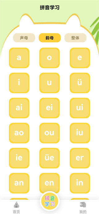 3、选中需要重点学习的拼音,点击进入后就能开展针对性的拼音学习。