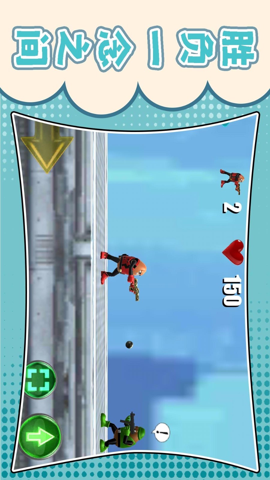 1. 操作方式:采用横版触屏操作,通过滑动屏幕控制角色移动、跳跃与下蹲,点击射击按钮攻击敌人,双击屏幕可触发滑铲动作躲避低空障碍。