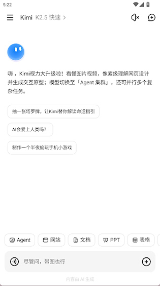 Kimi是一款多功能助手应用,具备超长上下文处理能力,轻松应对复杂任务场景,涵盖文档解析、内容创作、编程辅助、数据分析等多个领域,通过自然语言描述完成从构思到成果输出的全过程,为学生、职场人士和技术从业者提供便捷高效的生产力支持。